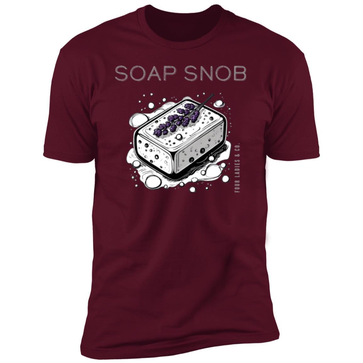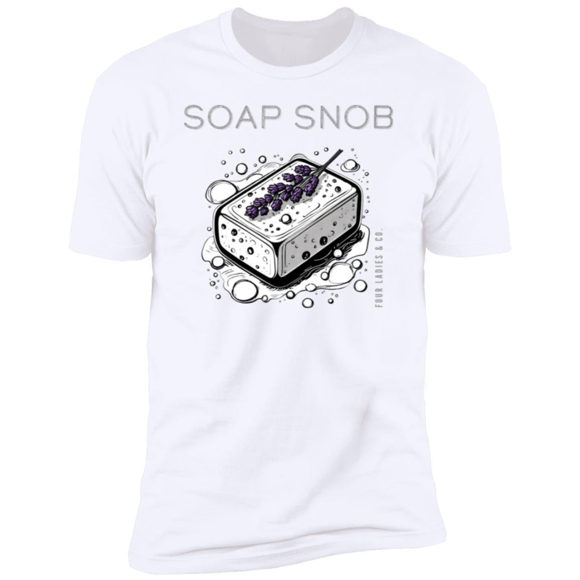 The one of a kind Soap Snob T-shirt is a statement piece that combines comfort with a touch of humor for those who take their soap seriously! This beauty only weighs 4.3 ounces and is crafted from 100% combed ring-spun cotton. This tee guarantees a luxurious and soft feel against your skin.